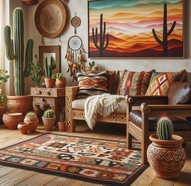 Southwestern decor is a warm, earthy, and vibrant style inspired by the landscapes, cultures, and traditions of the American Southwest. This design aesthetic blends elements from Native American, Mexican, and Spanish influences, resulting in a rustic yet colorful and welcoming atmosphere.